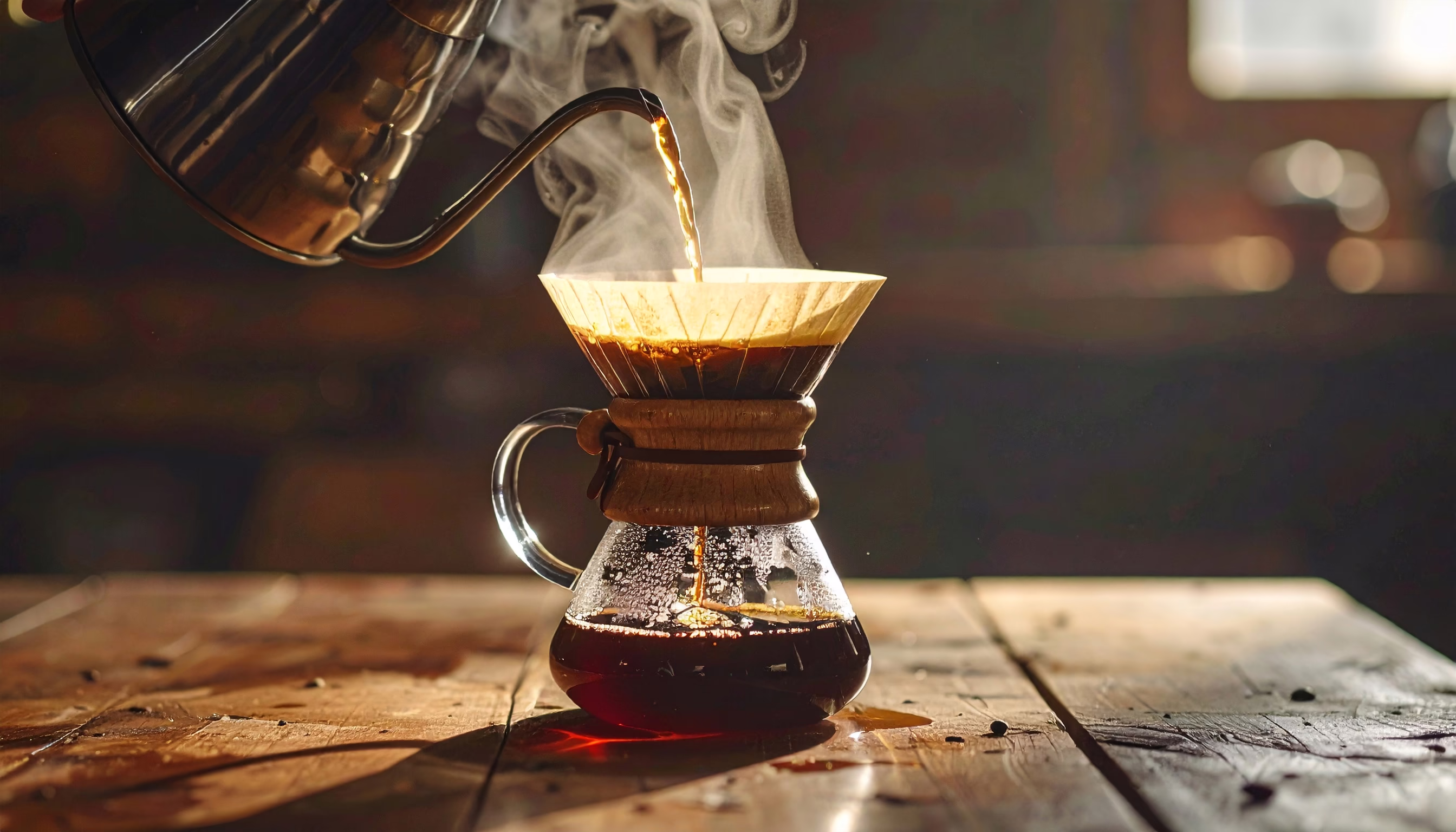 Coffee Brewing in a Chemex with Rustic Ambiance