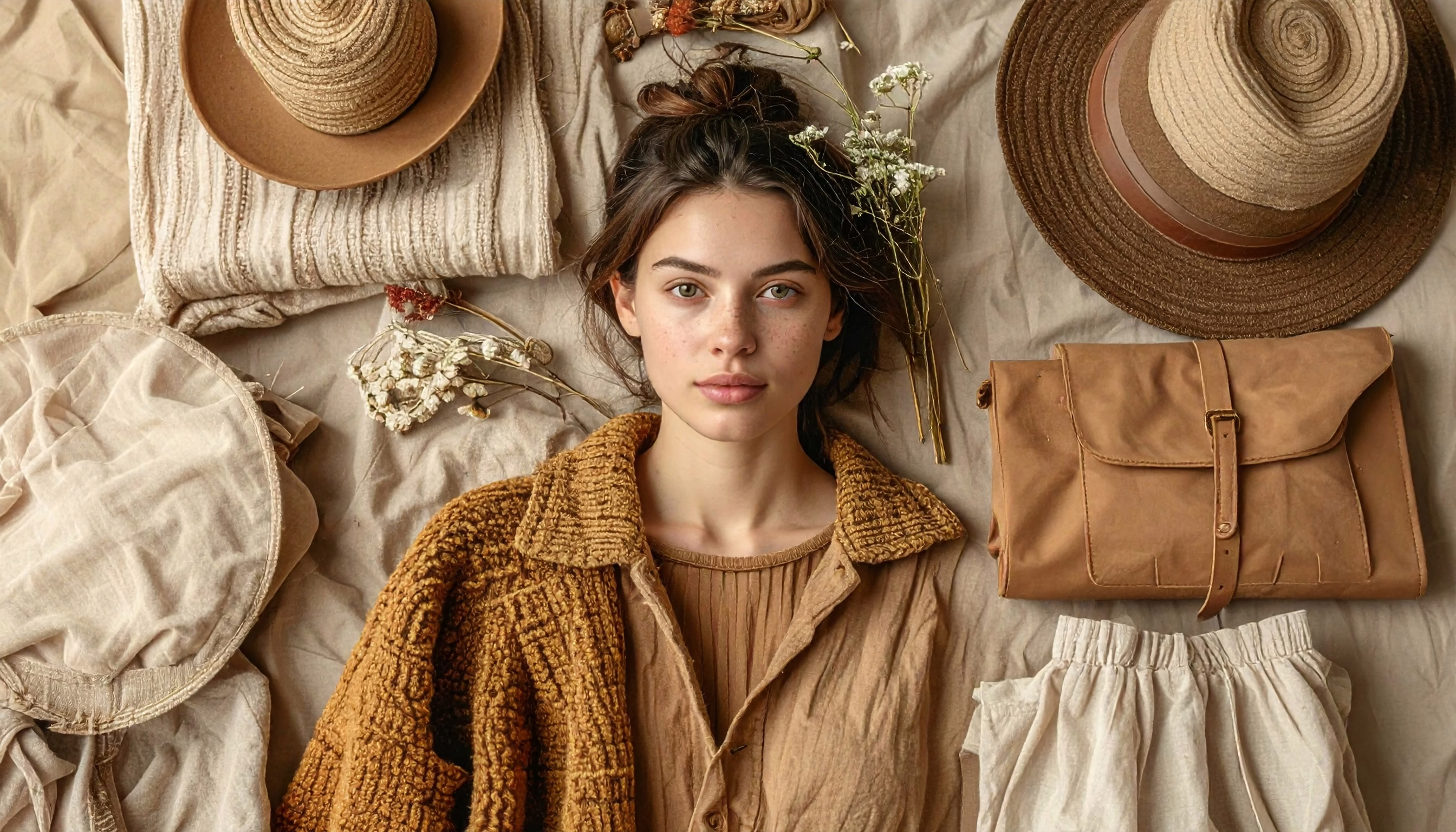 Portrait of a Woman Surrounded by Earthy Fashion Items