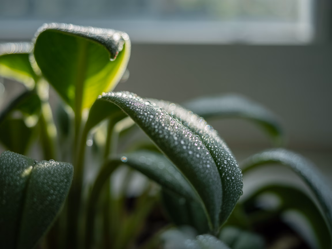 This image is classified with the tags: green leaves, dew drops, nature, texture, close-up.