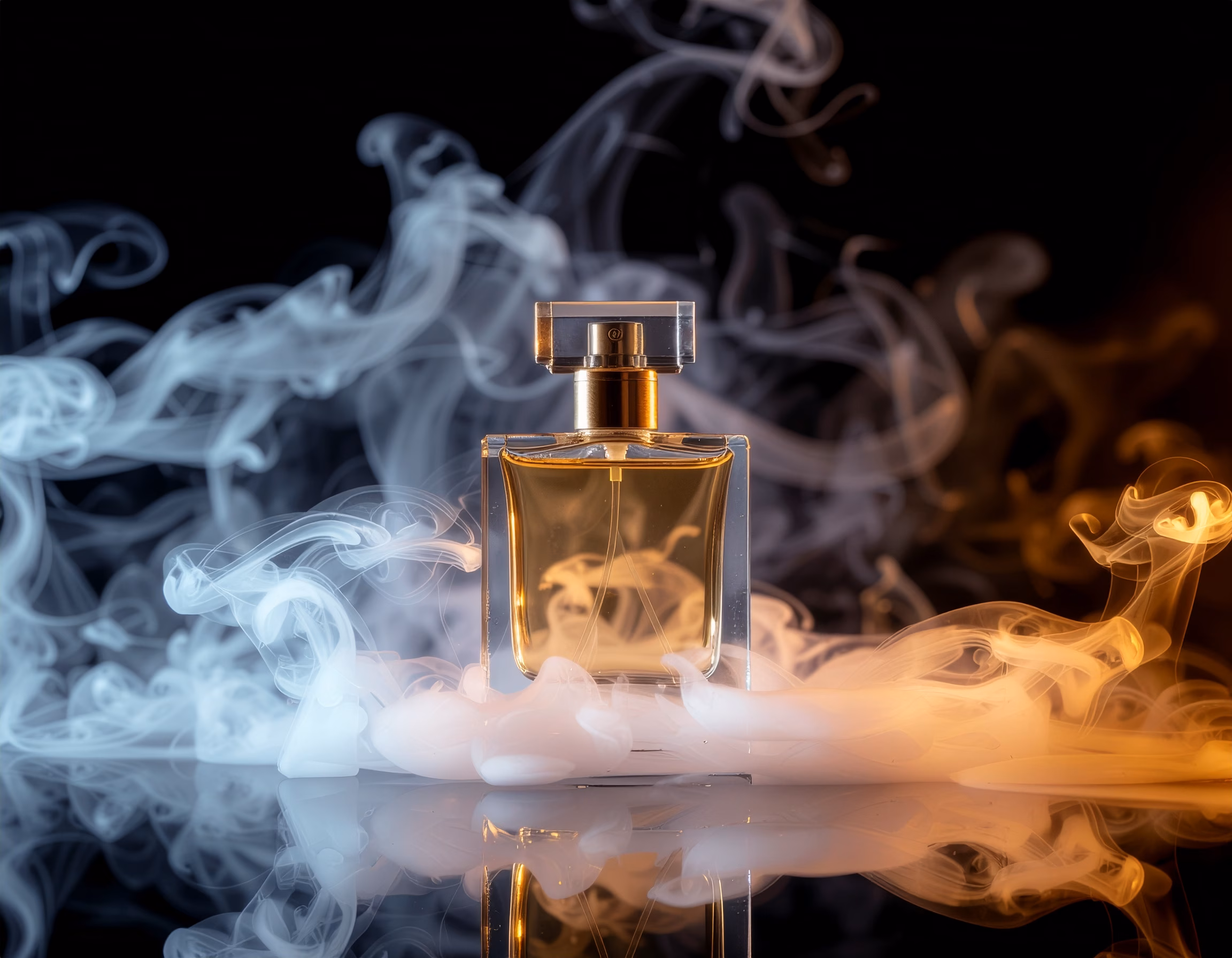 Elegant Perfume Bottle Surrounded by Smoke Swirls