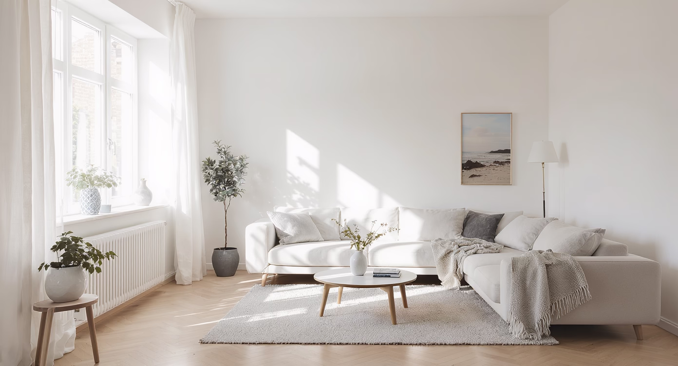 Ideal for creating a relaxing and inviting home atmosphere, this setup includes a soft rug and minimalist coffee table. The abundant natural light from large windows enhances the room's airy, serene vibe. Perfect for everyday use or entertaining...