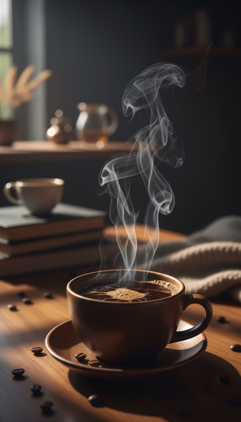 Perfect for enhancing a cozy ambiance, this image is ideal for coffee shops, home decor, or lifestyle promotions. The warm brown tones and soft lighting create a comforting and intimate atmosphere. Us...