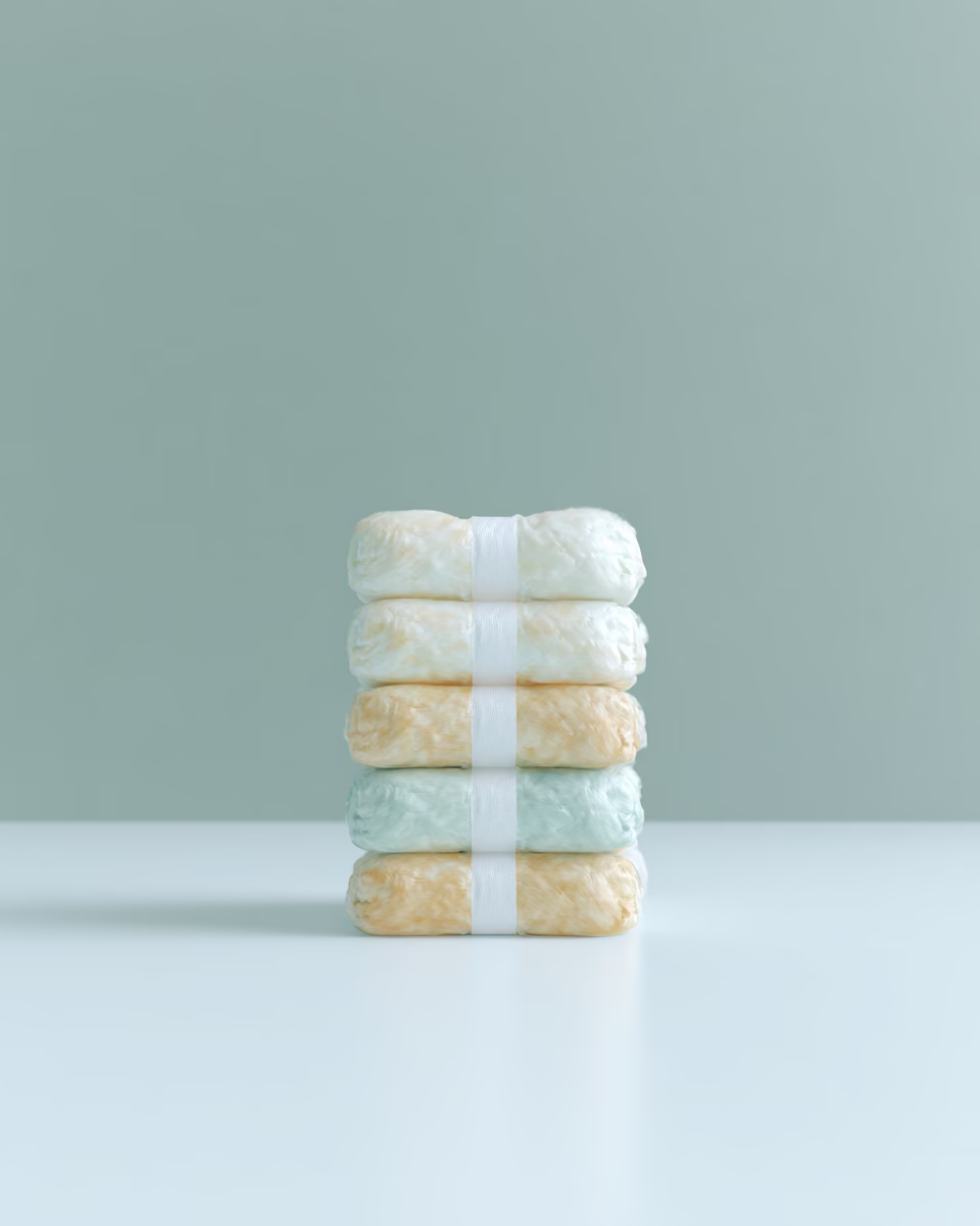 Discover this beautiful stack of soft cotton towels in gentle shades of yellow, green, and white, tied with a white ribbon. Perfect for enhancing your bathroom decor or for use in spas, these towels combine style and functionality.
