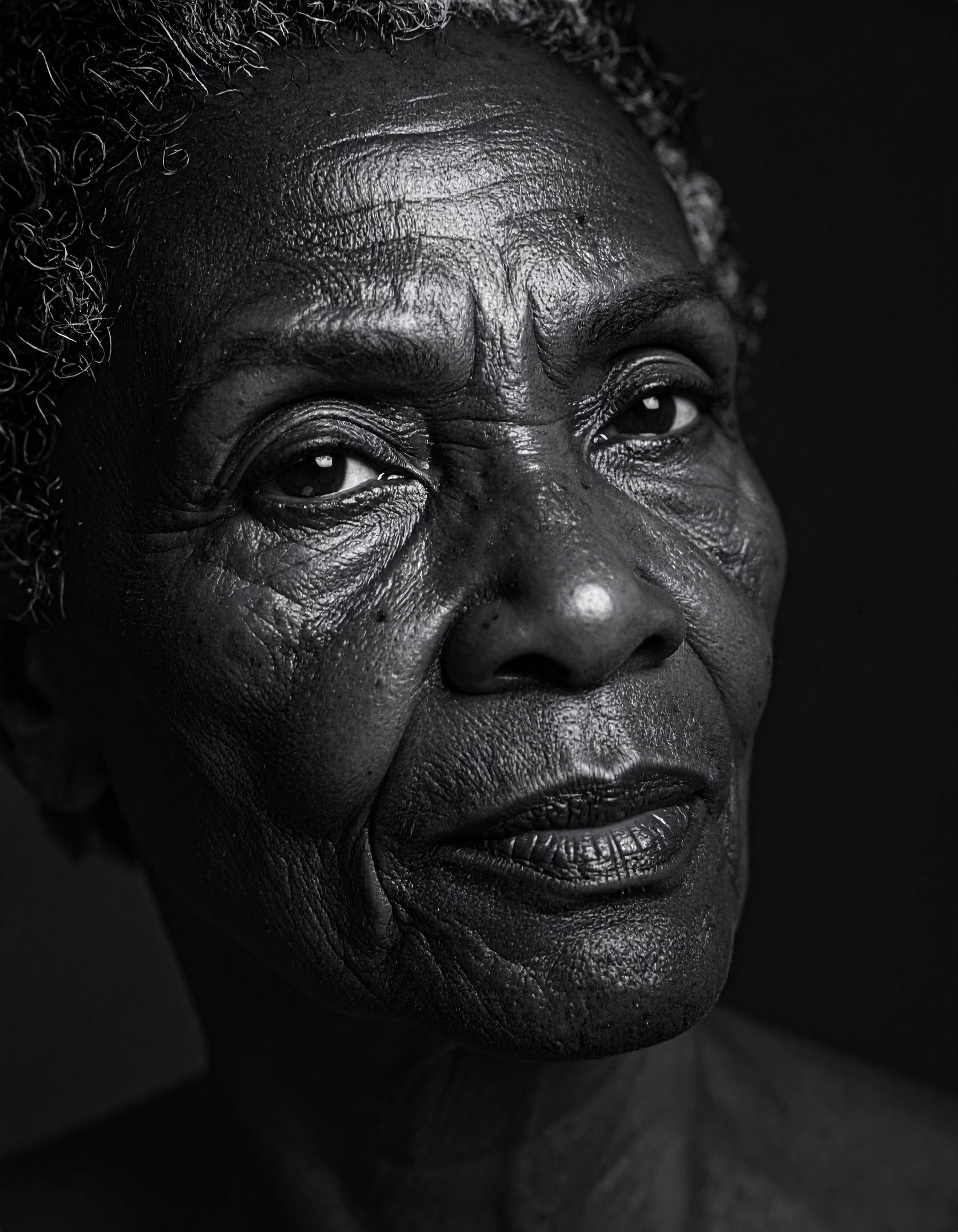 This image is ideal for highlighting themes of wisdom and experience in marketing materials. The rich textures of the skin and the deep shadows create a powerful visual impact. It can be used in campaigns focusing on aging, heritage, or...