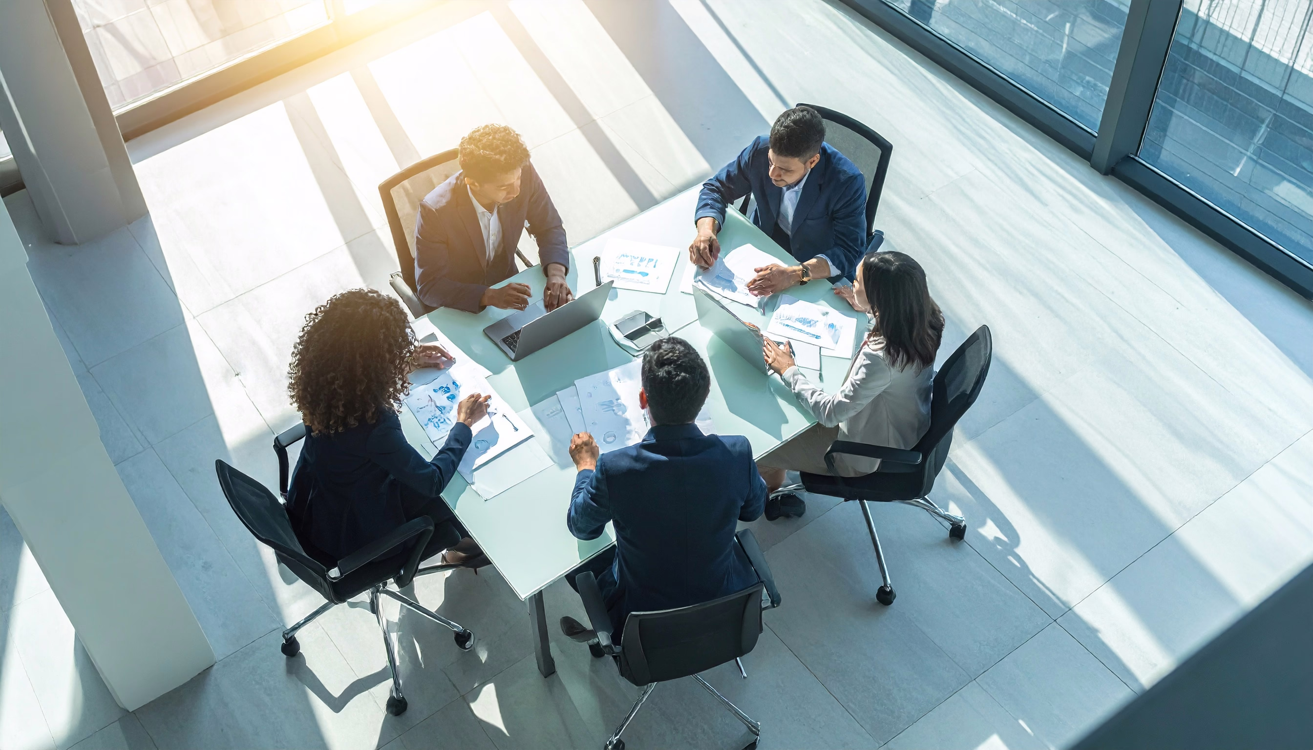 This image is classified with the tags: business meeting, teamwork, collaboration, conference room, office setting.