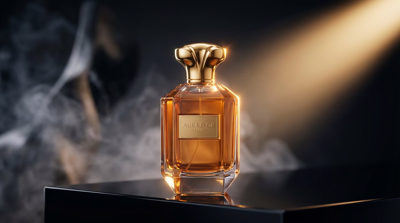 This image is classified with the tags: luxury, perfume, elegance, gold, amber.