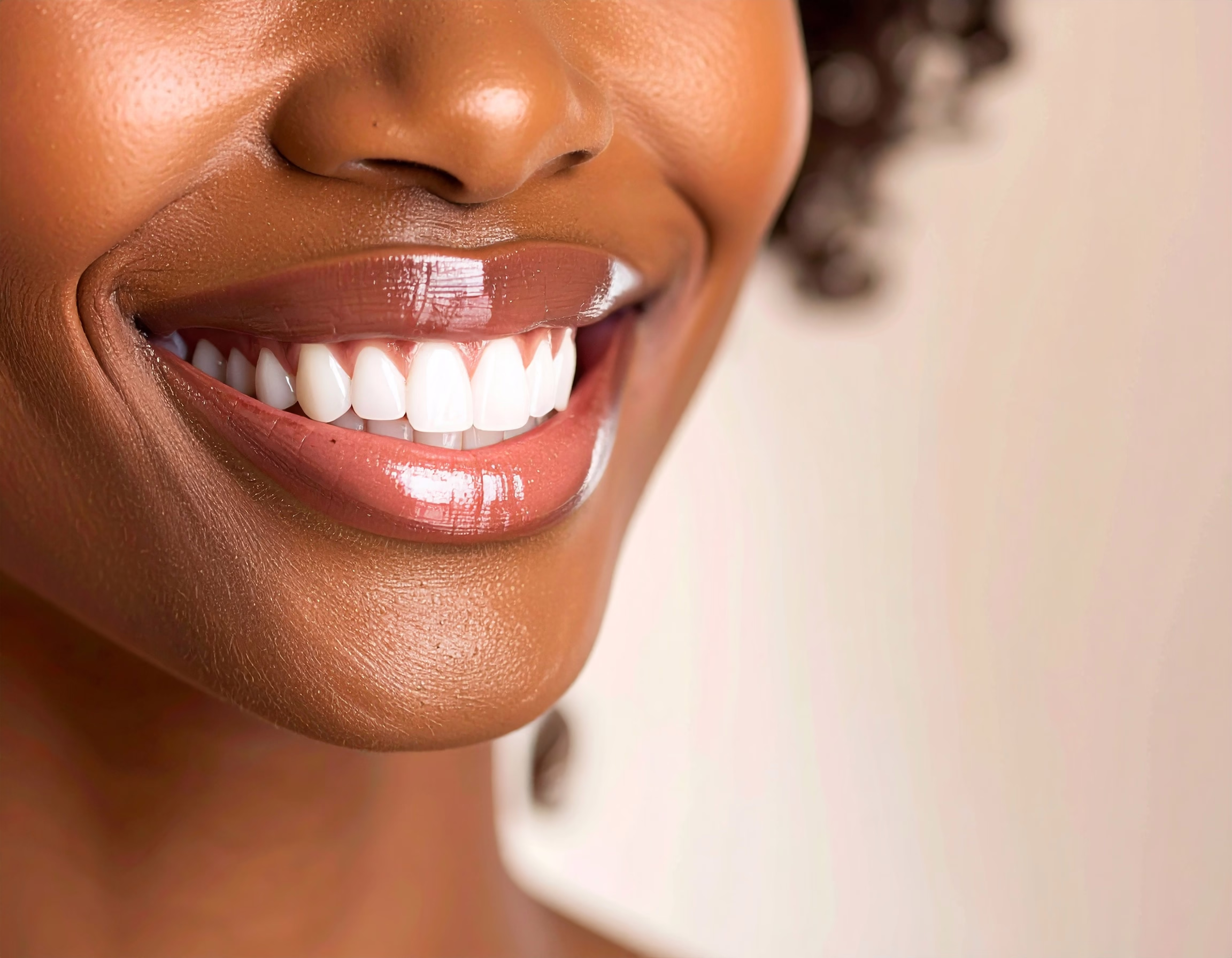 This image is ideal for dental care products or promotions. The glossy lips and smooth skin add a touch of elegance and health. Perfect for use in cosmetic or health-related contexts. It emphasizes th...