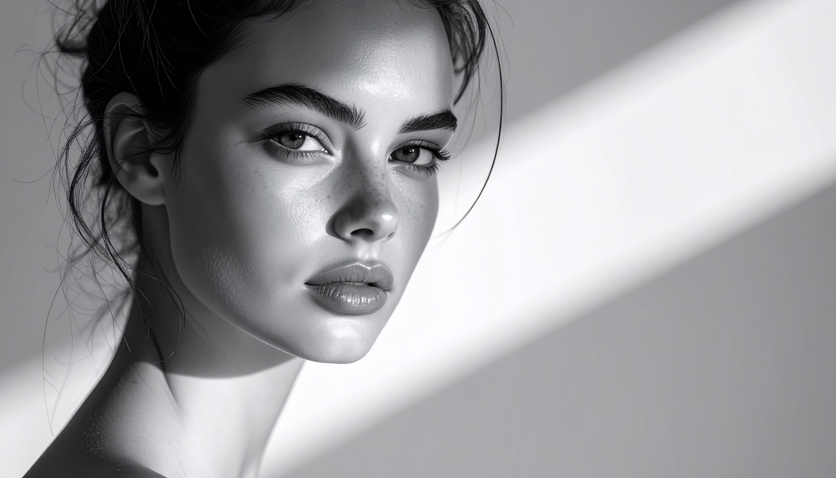 This image is classified with the tags: monochrome, portrait, beauty, elegance, skincare.