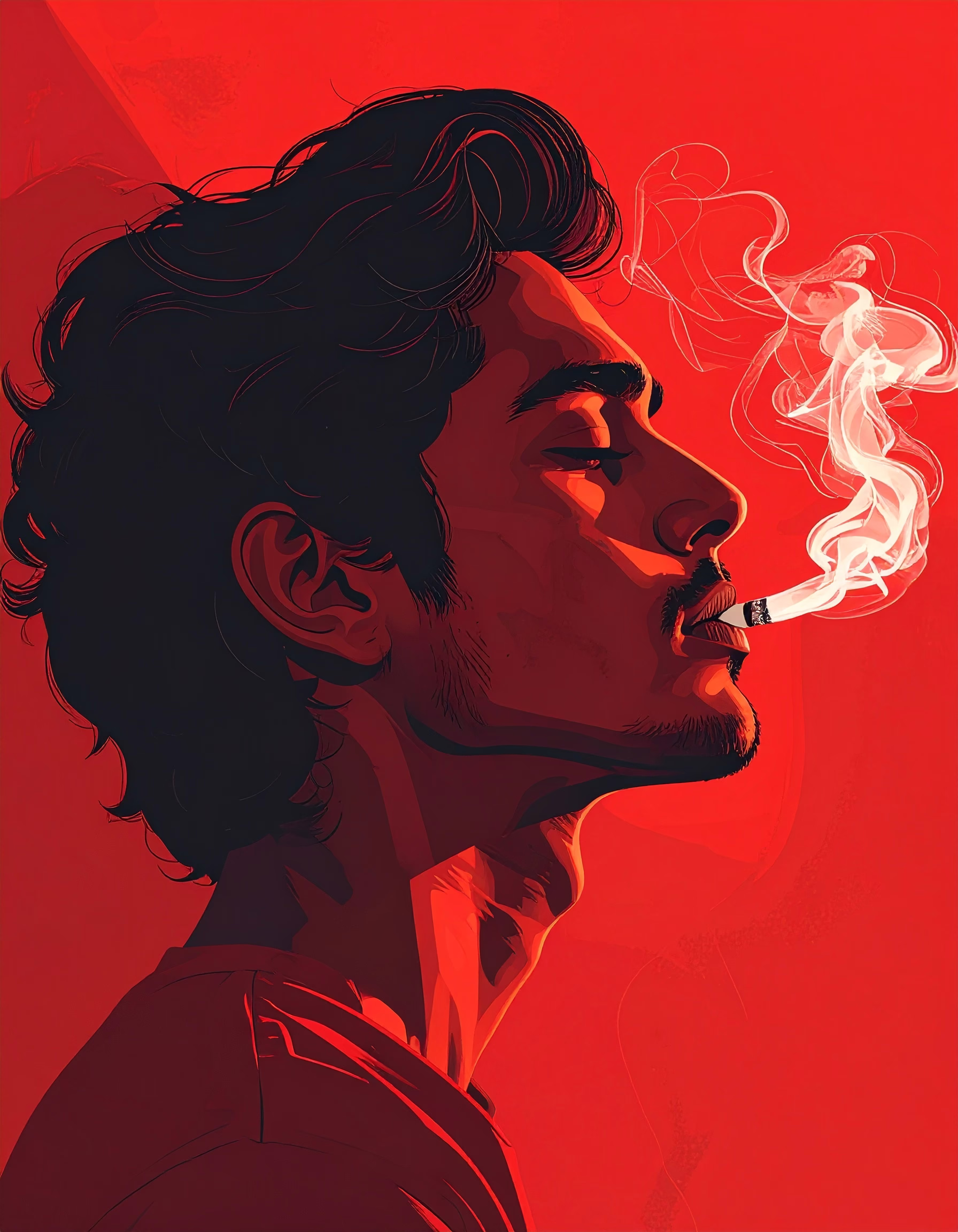 This image is classified with the tags: illustration, smoking, red background, lifestyle, artistic expression.
