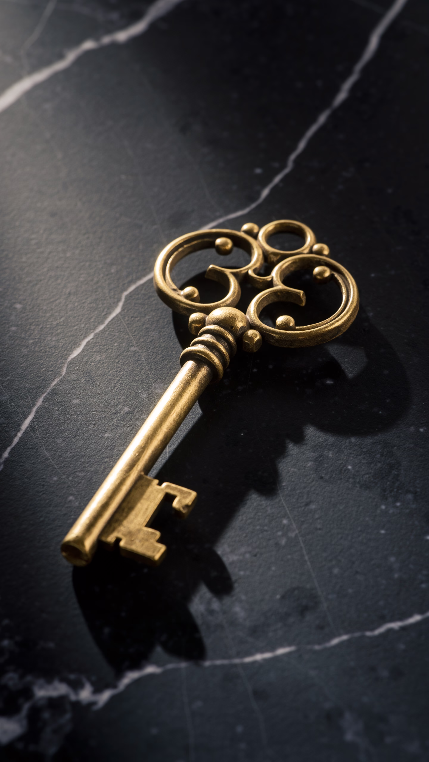 This key is perfect for collectors or those looking to add a touch of antique charm to their decor. Its intricate design and warm golden hue stand out beautifully against the dark background. Ideal for use in interior design projects or as a unique...
