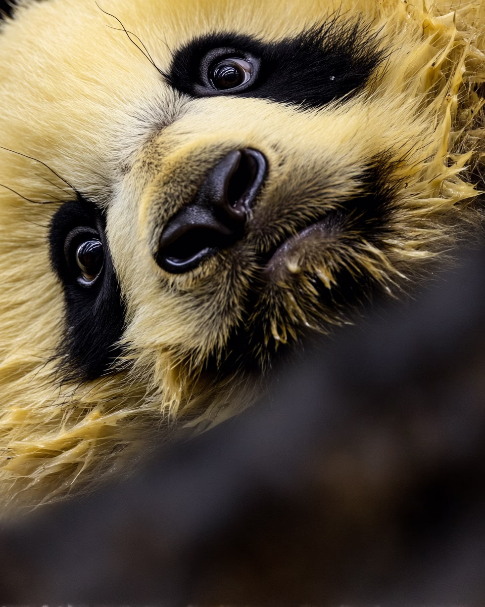 Experience the captivating close-up of a giant panda, showcasing its distinctive black and white fur. The soft lighting enhances the texture of its coat, while the intimate angle invites curiosity. Th...